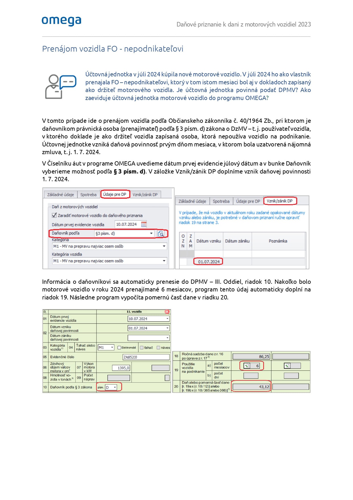 Najrôznejšie kombinácie áut a ich použitia v podnikaní OMEGA hravo spracuje v daňovom priznaní motorových vozidiel. Stačí len správne zaevidovať údaje o aute. A s tým vám tiež pomôžeme.