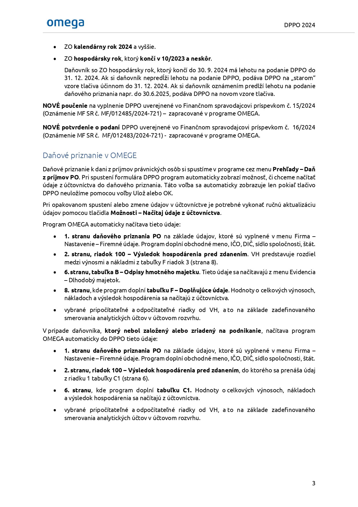 2.1. Načítanie údajov do daňového priznania v OMEGE