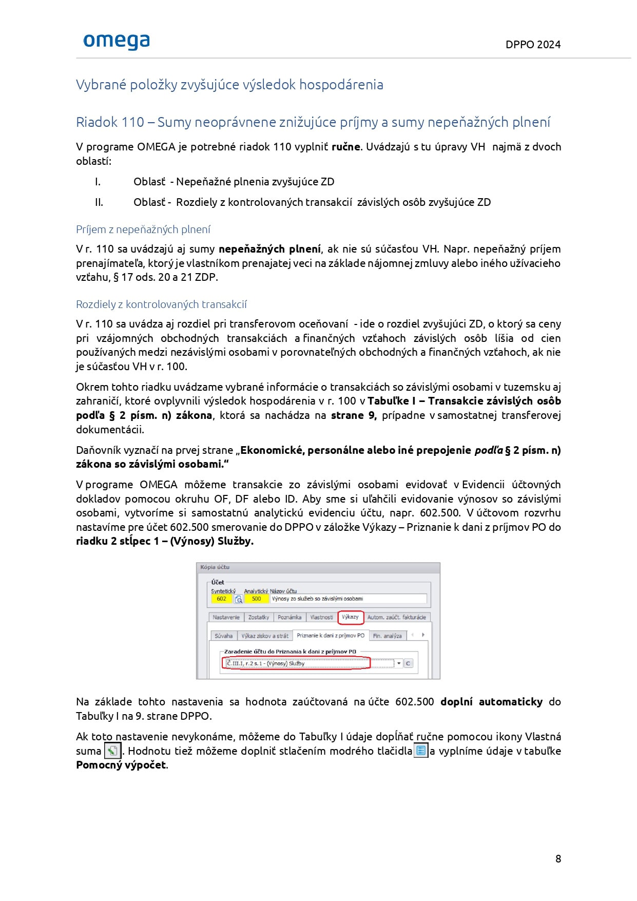 2.3. Majetok v OMEGE a jeho vplyv na DPPO