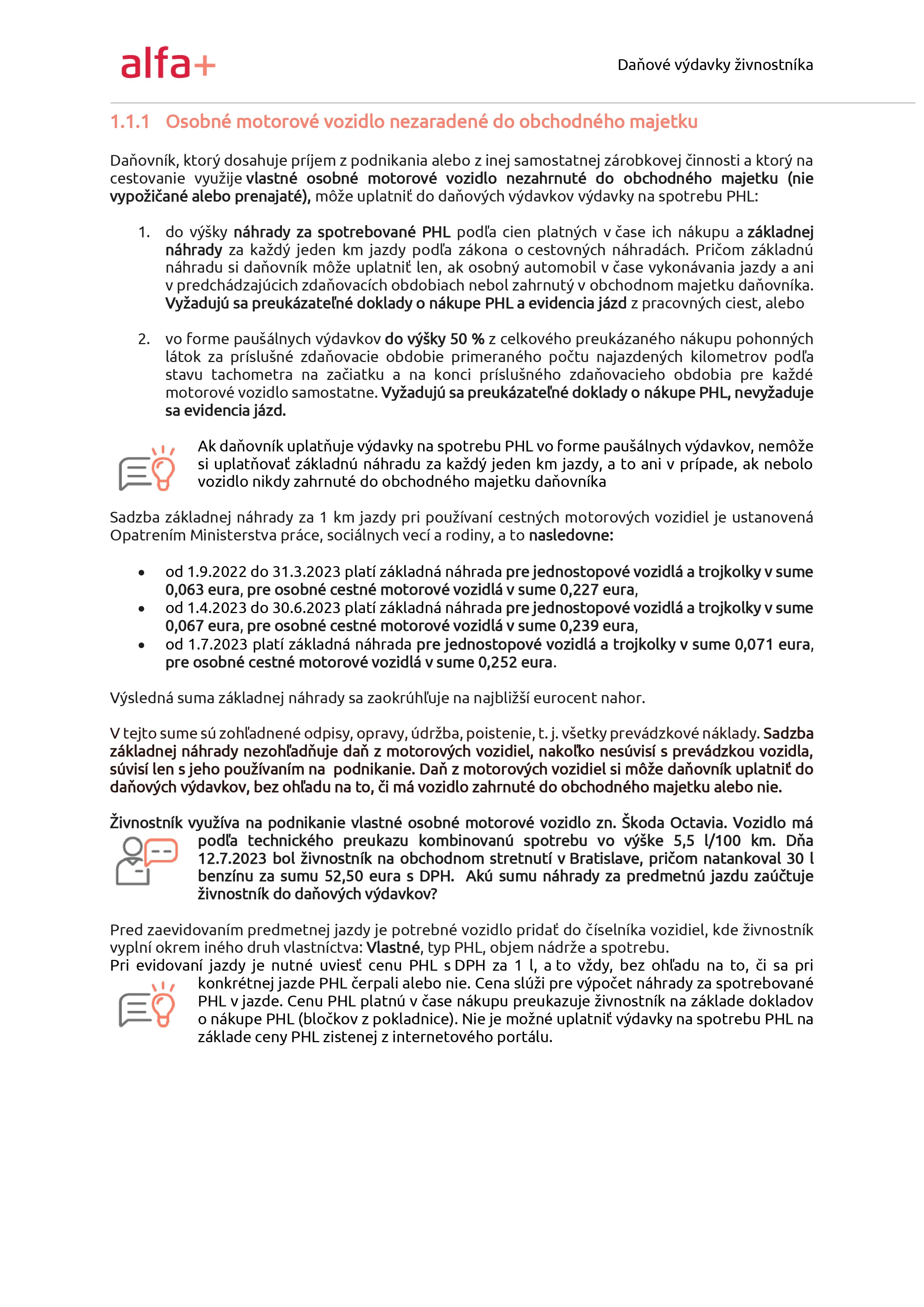 Z praxe vieme, že práve daňové výdavky majú značný vplyv na výšku základu dane. Ich daňovú uznateľnosť však treba individuálne posúdiť. Napríklad, pri osobnom automobile, veľkú úlohu zohráva to, či je alebo nie je vozidlo zaradené v majetku firmy, prípadne je prenajaté.