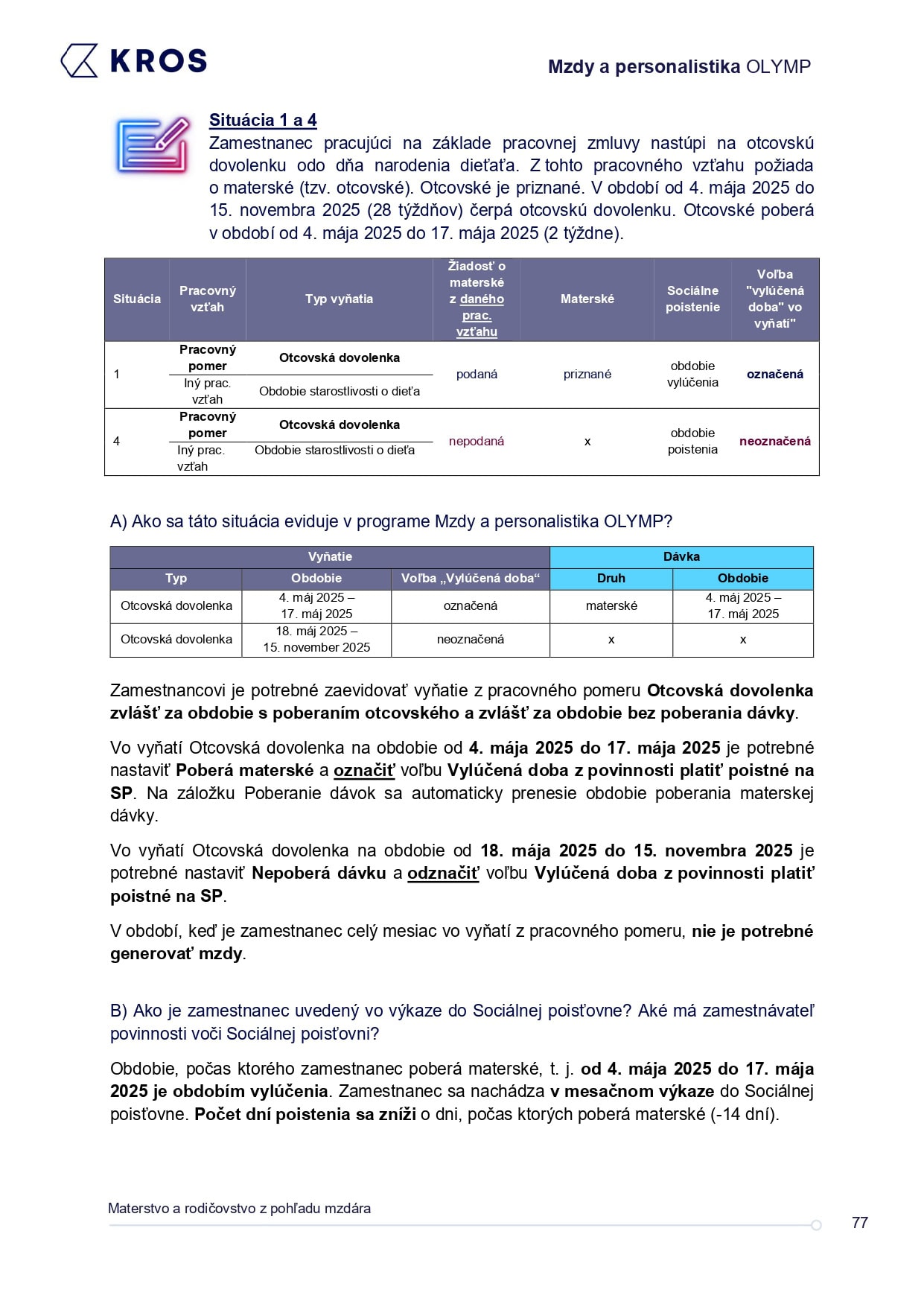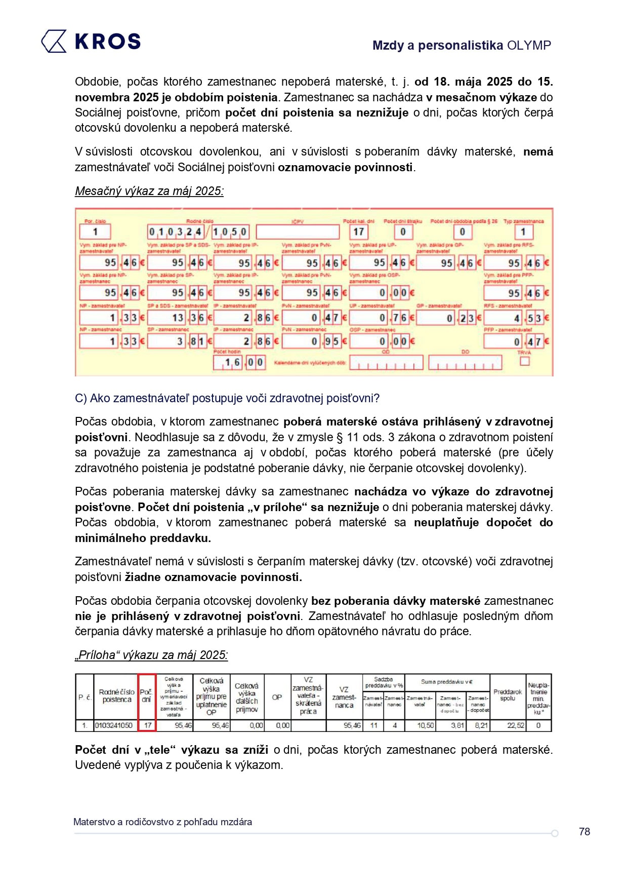 Praktický sprievodca pre mzdárov, ktorý zrozumiteľne pokrýva témy súvisiace s materskou, rodičovskou a otcovskou dovolenkou. Nájdete v ňom kompletný prehľad práv a povinností zamestnancov aj zamestnávateľov, od dávok a oznamovacích povinností až po špecifické pracovné podmienky. Nechýbajú ani vysvetlenia k zdravotnému a sociálnemu poisteniu či konkrétne postupy v programe Mzdy a personalistika OLYMP. Vďaka nemu budete mať istotu, že každú situáciu vyriešite rýchlo a bez zbytočných chýb.