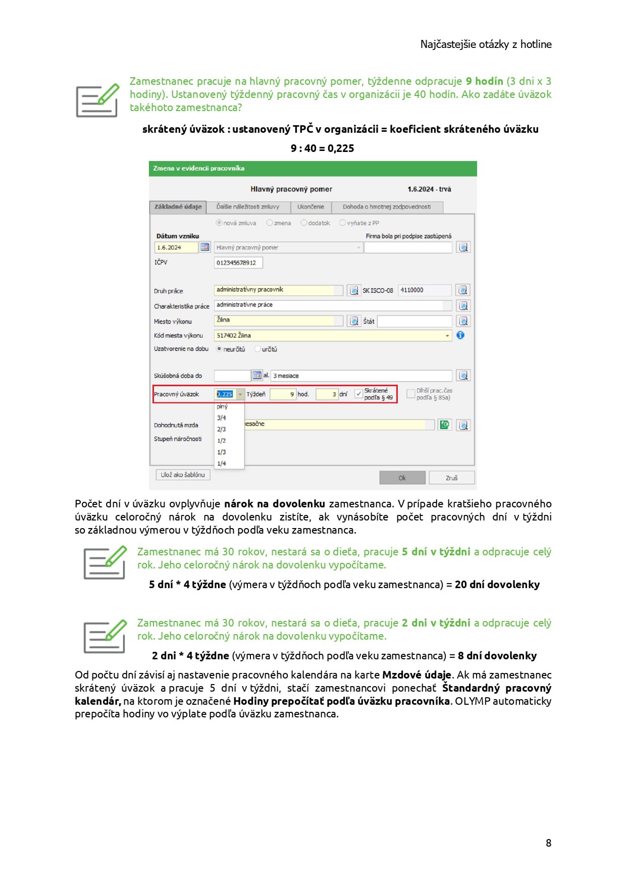 Pripravili sme pre vás e-book Najčastejšie otázky z hotline, v ktorom nájdete množstvo návodov a praktických rád, ktoré vám môžu pomôcť, pri spracovaní personálnej a mzdovej agendy v OLYMPE. Vybrali sme otázky, s ktorými sa najčastejšie na nás obraciate na hotline. Veríme, že v tejto publikácii nájdete množstvo užitočných informácií a odpovede na vaše otázky.
