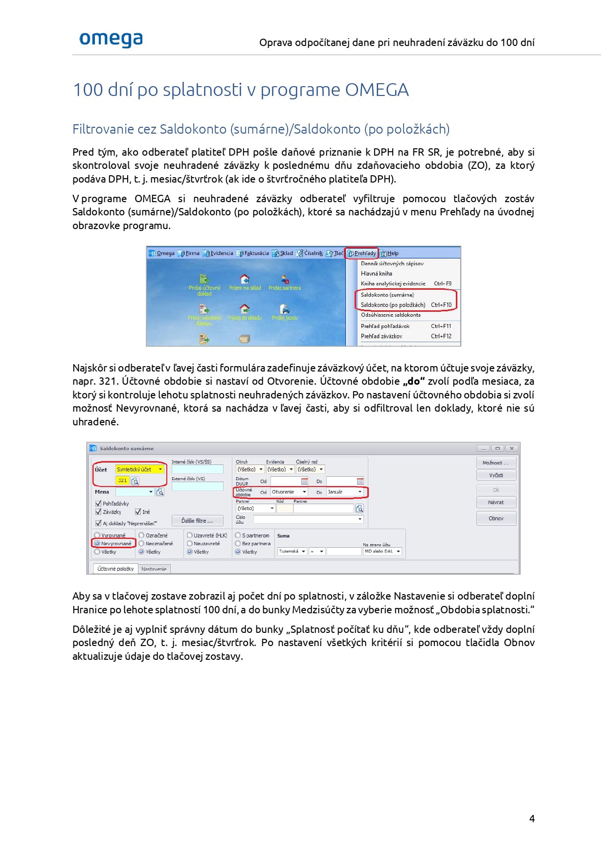 Okrem legislatívnych informácií sa dozviete, ako jednoducho vyfiltrovať neuhradený záväzok po splatnosti 100 dní v Saldokonte alebo v Prehľade záväzkov, či ako správne zaúčtovať doklad k oprave odpočítanej dane v OMEGE.