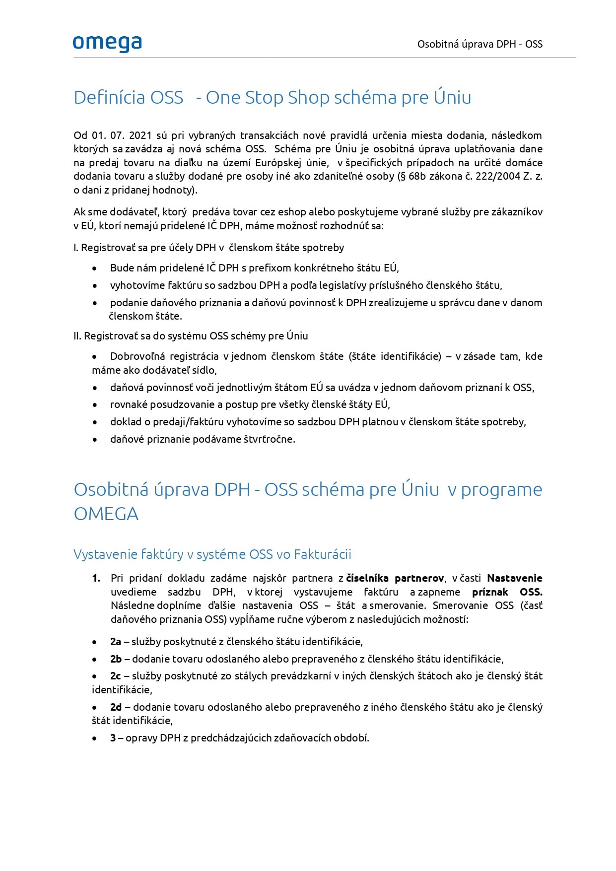 1.2. Osobitná úprava DPH – OSS schéma pre Úniu v programe OMEGA
