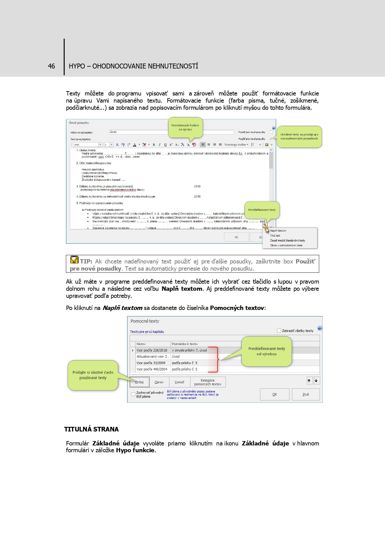 – Ďalšie funkcie programu Ohodnocovanie nehnuteľností HYPO