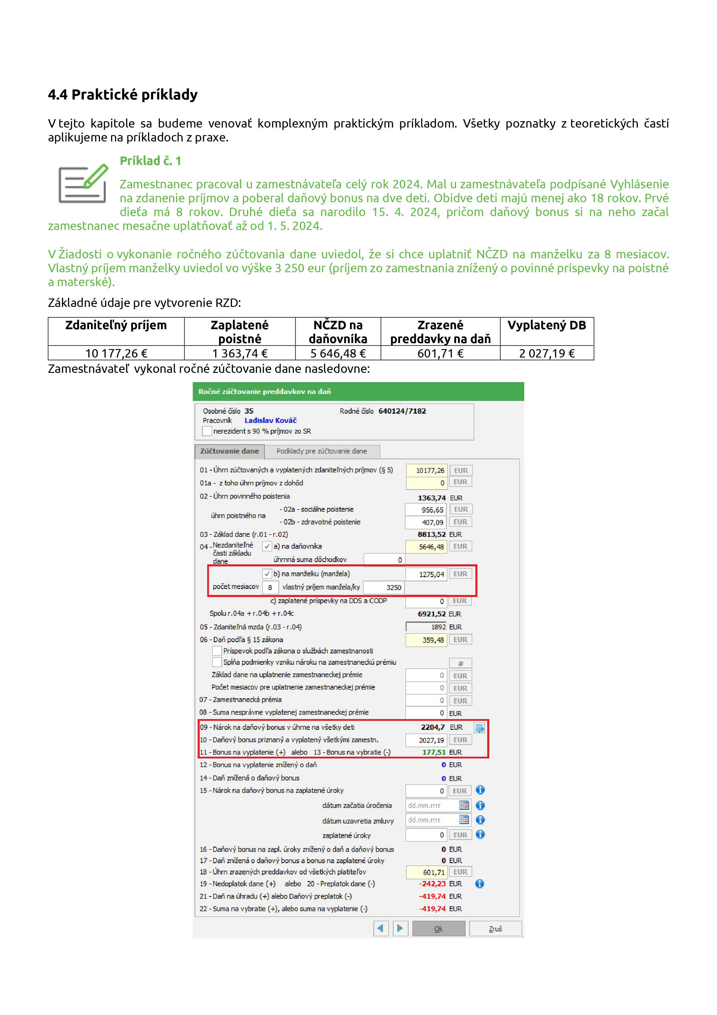 E-book obsahuje komplexný postup spracovania ročného zúčtovania dane za rok 2024 v súlade s platnou legislatívou. Nájdete tu vysvetlené základné legislatívne pojmy súvisiace s ročným zúčtovaním dane a praktické príklady aj s výpočtom daňového bonusu na dieťa a na zaplatené úroky. V e-booku sú prehľadne spracované povinnosti zamestnávateľa a zamestnanca, ako aj aktuálne daňové tlačivá s návodom na ich správne vyplnenie.