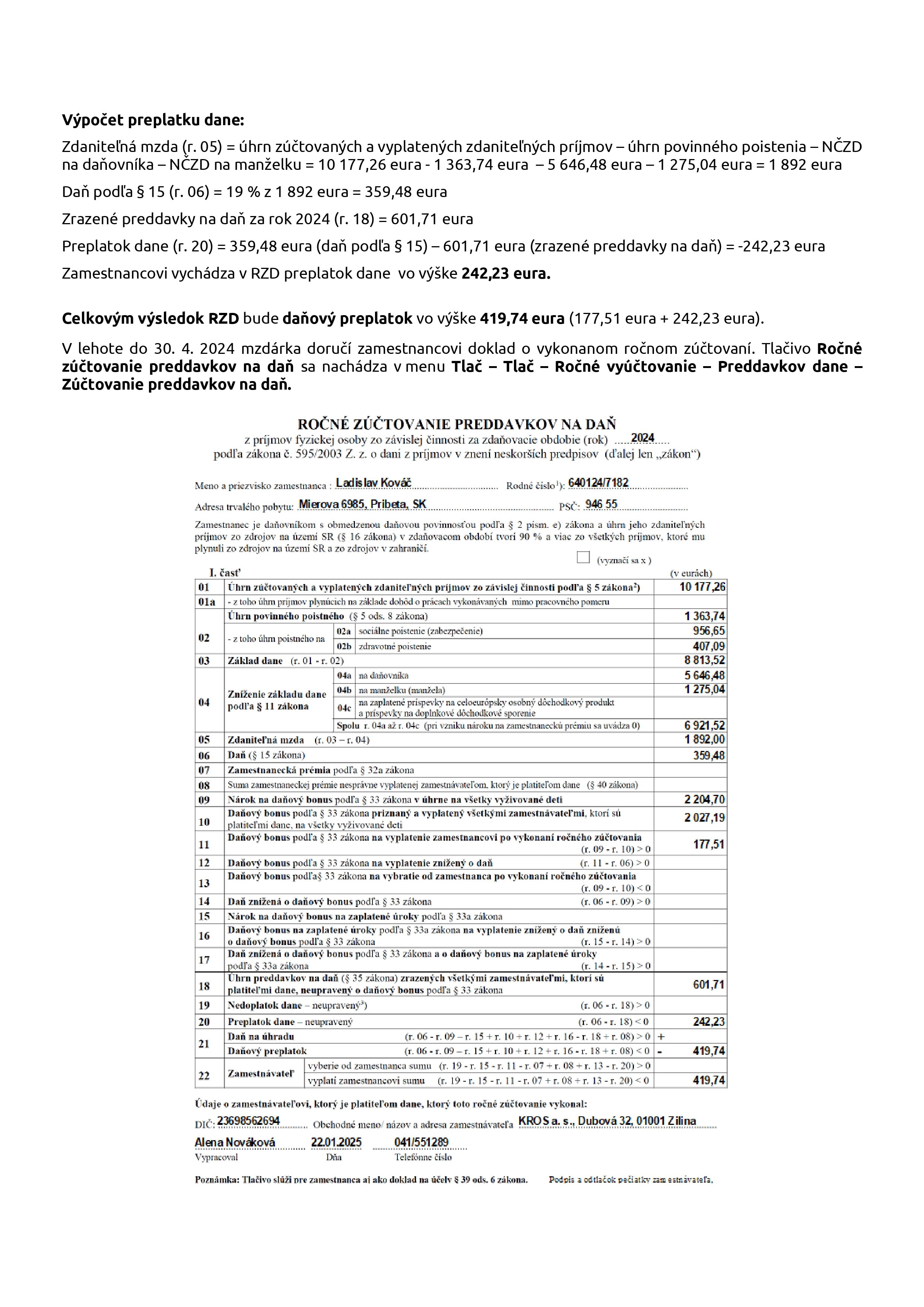 - Vysporiadanie výsledkov z RZD so správcom dane