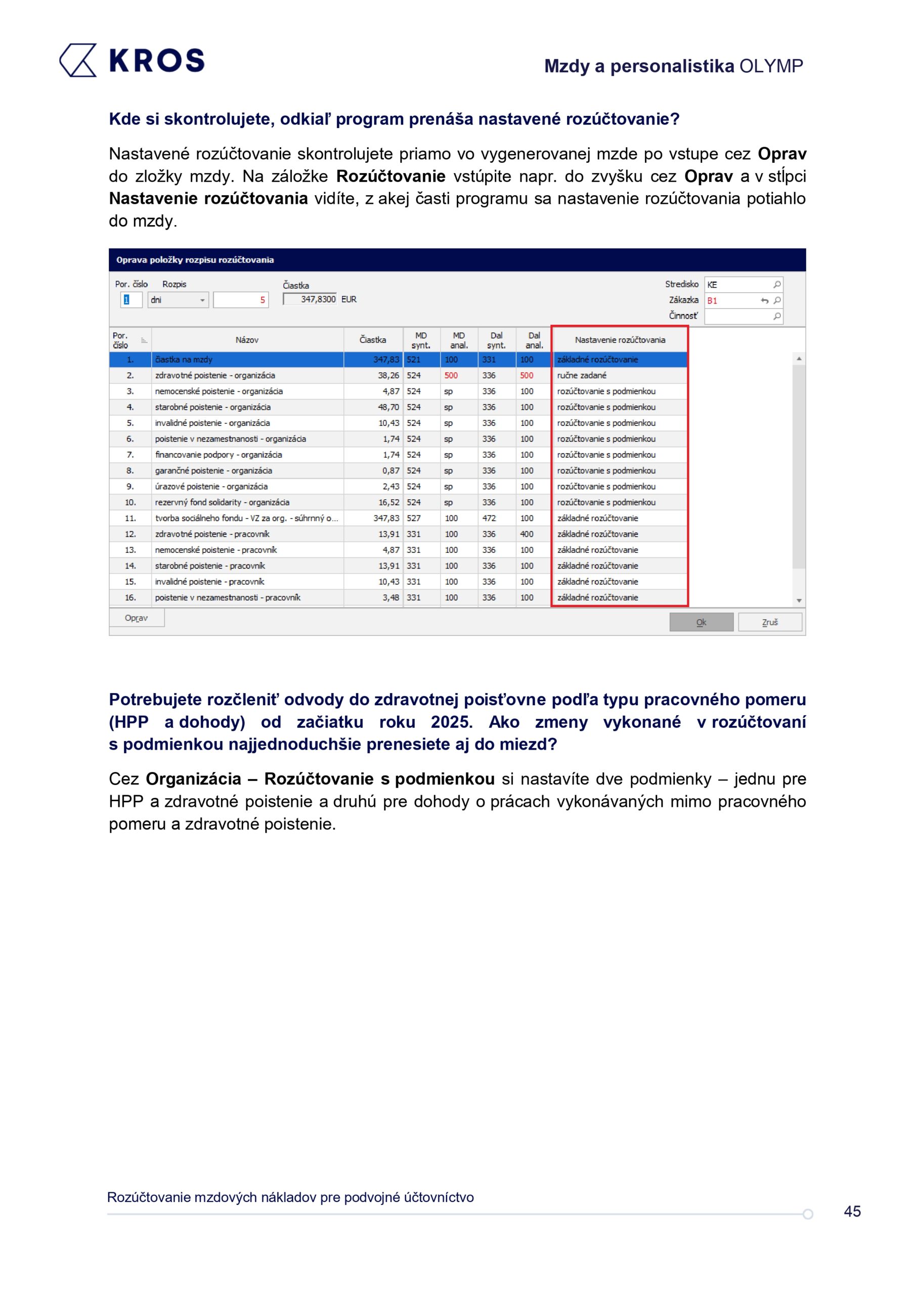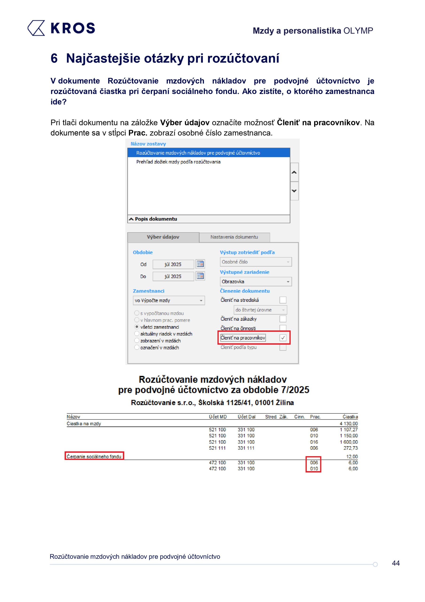 Rozúčtovanie mzdových nákladov pre podvojné účtovníctvo