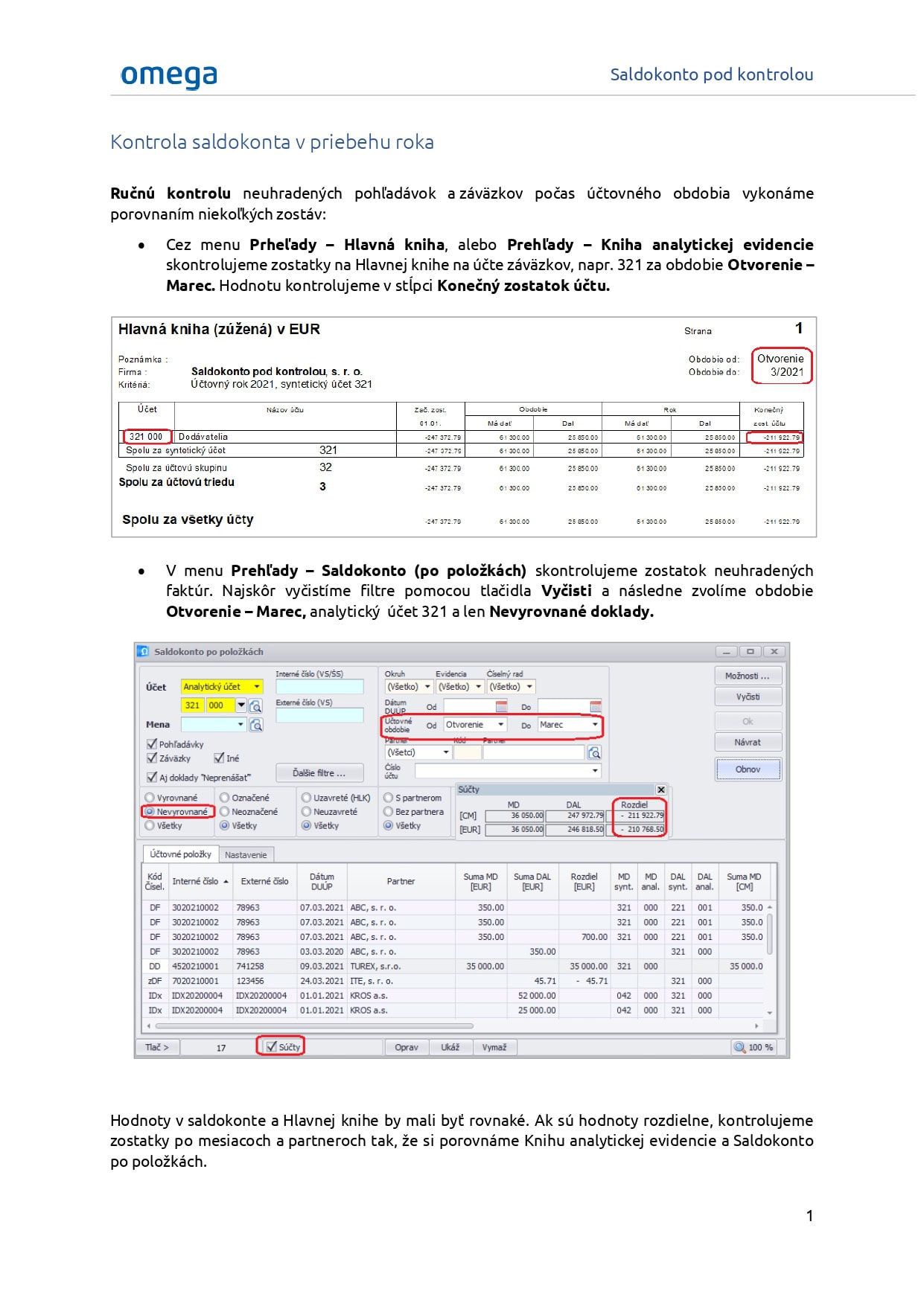 1.2. Saldokonto sumárne a saldokonto po položkách