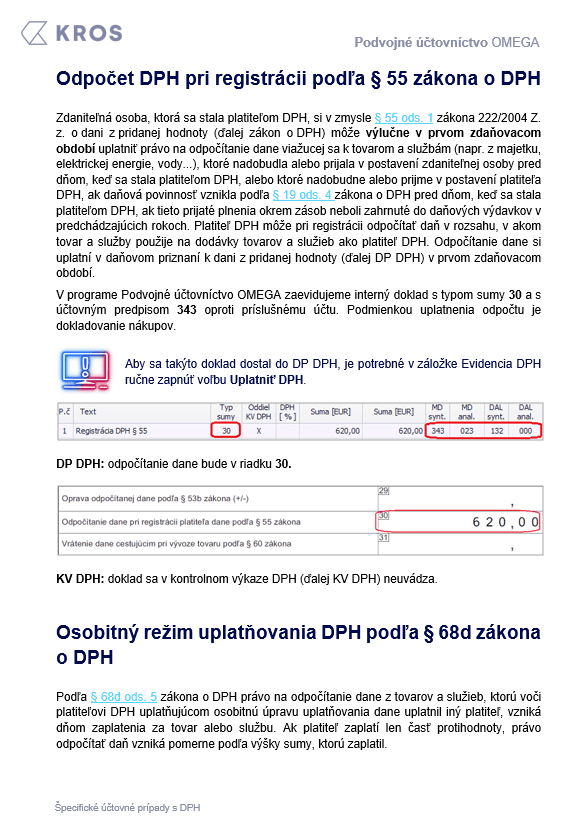 1.1. Odpočet DPH pri registrácii podľa § 55 zákona o DPH