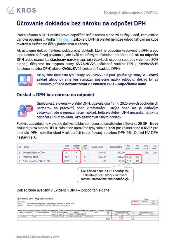 1.7. Účtovanie dokladov bez nároku na odpočetu