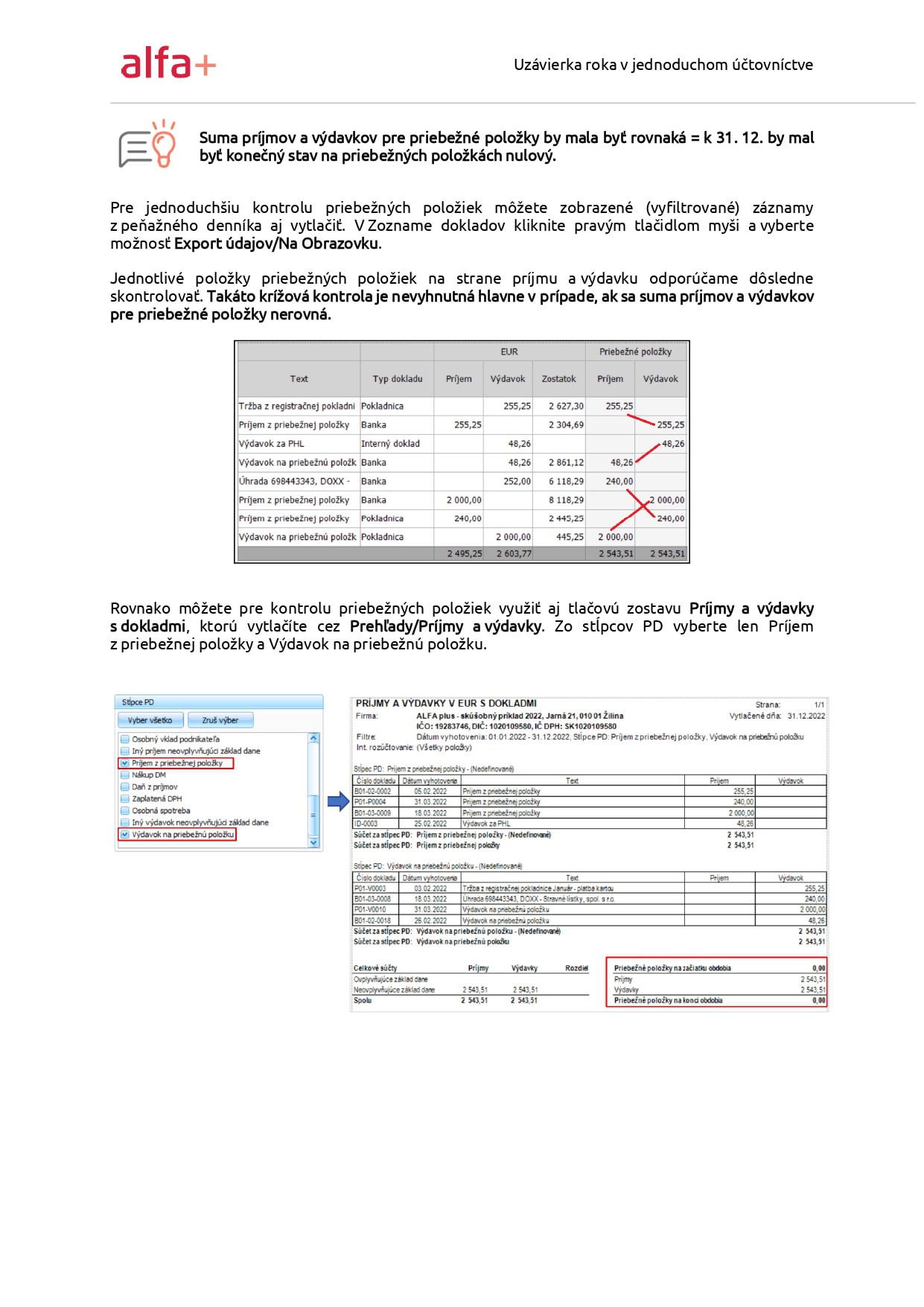 Pripravujete sa na uzávierku roka? Doúčtovanie posledných dokladov, kontrola, inventarizácie, odsúhlasenie zostatkov… je toho veľa a vy neviete, kde začať? Odpovede nájdete v našom e-booku. Postupne prejdeme jednotlivé evidencie, uzávierky a koncoročné operácie tak, aby ste úspešne vytvorili účtovnú závierku a daňové priznanie. Okrem legislatívnych informácií oceníte aj praktické príklady a tipy z praxe.