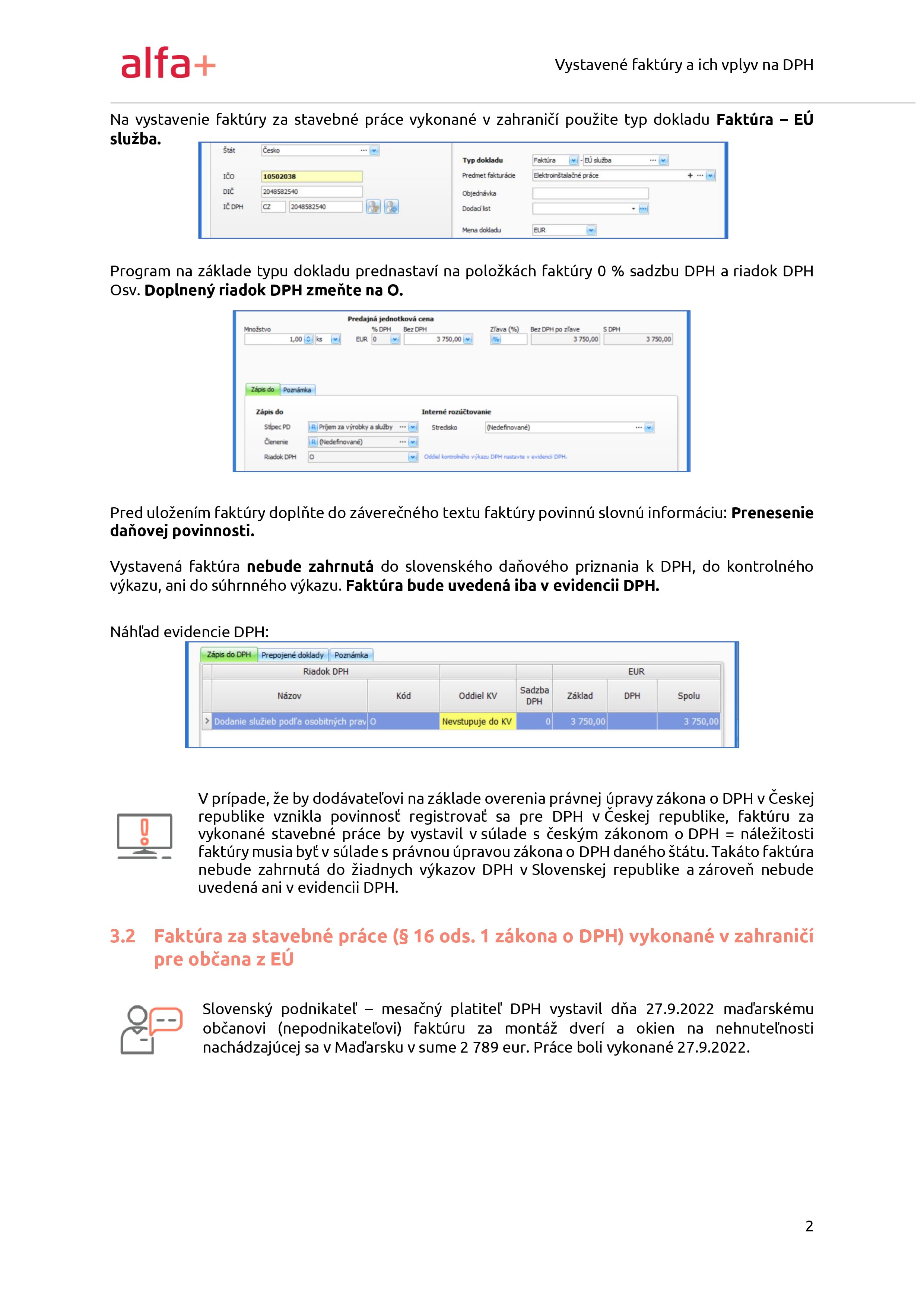 Ste platiteľom DPH a strácate sa v tom, čo všetko má obsahovať správne vystavená faktúra? V akých prípadoch a komu máte povinnosť fakturovať cenu s DPH a kedy môžete využiť prenos daňovej povinnosti na odberateľa? Viete, ktoré povinné slovné informácie treba uvádzať na faktúrach? Odpovede nájdete v našom e-booku, kde sa na vystavenie faktúry pozrieme z pohľadu zákona o DPH, a to všetko za pomoci praktických príkladov a tipov z praxe.