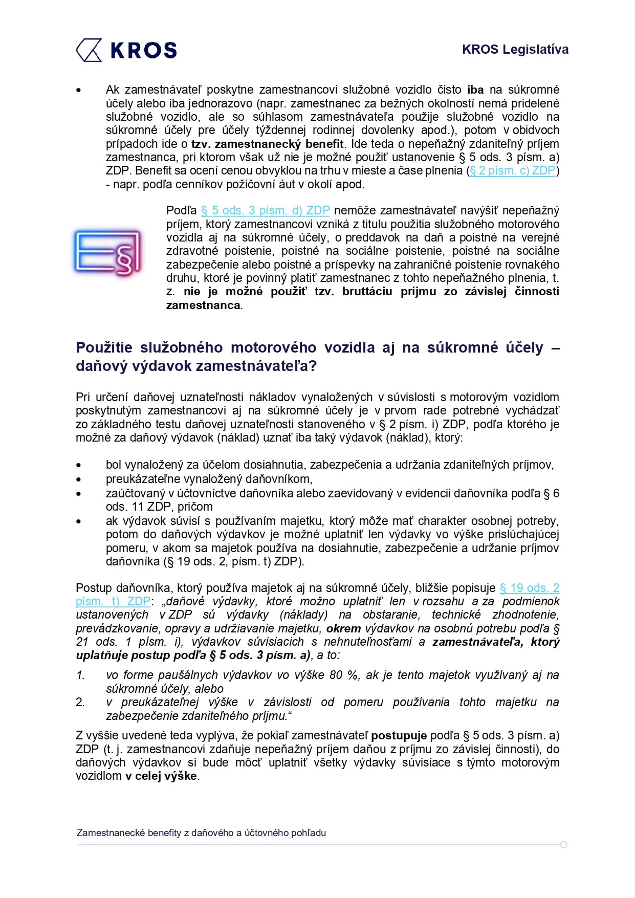 -Použitie služobného motorového vozidla aj na súkromné účely – daňový výdavok zamestnávateľa?